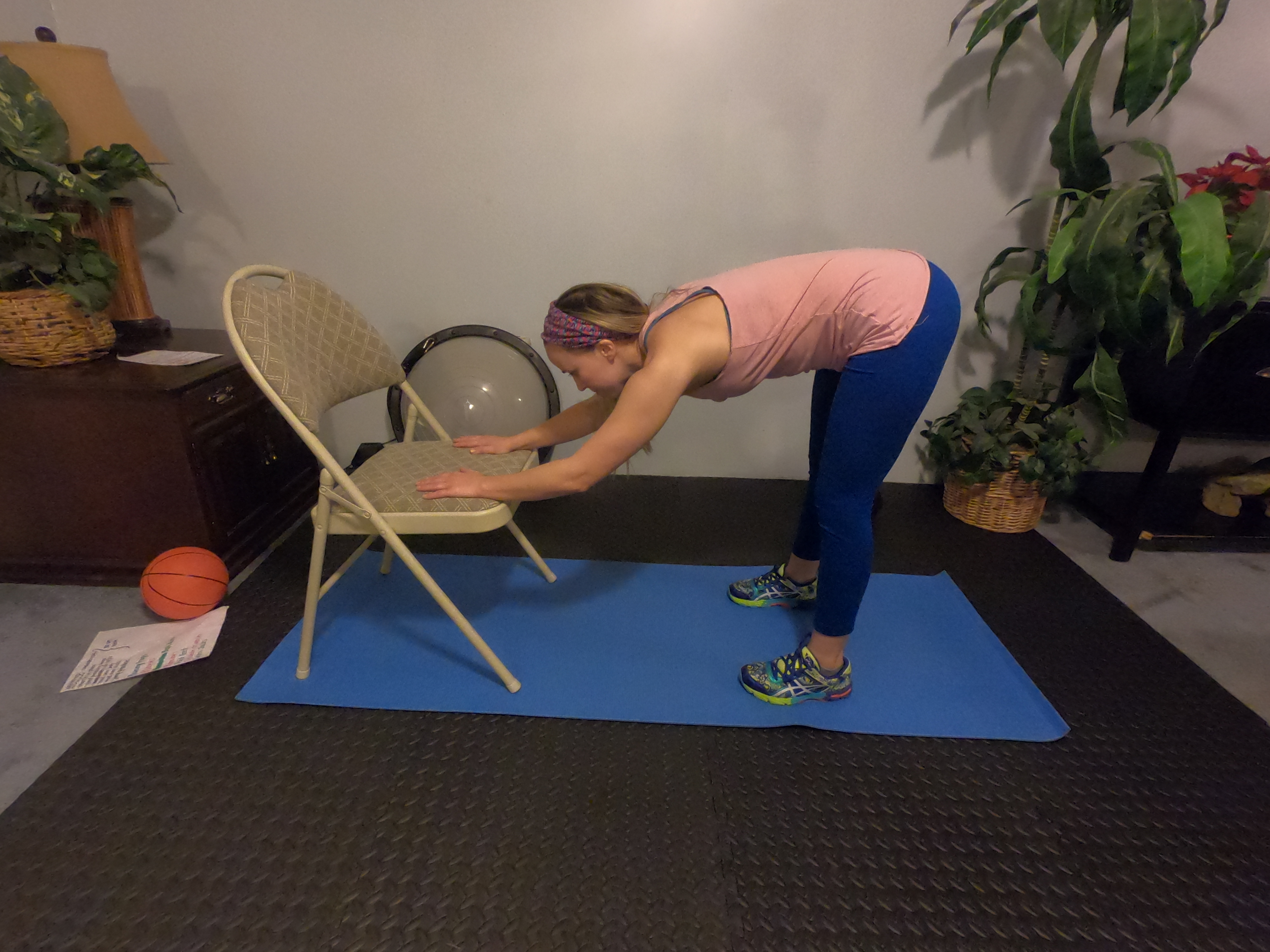- Forward bend w/ chair support